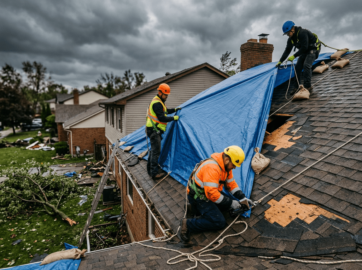 Emergency roof tarping, structural stabilization, debris removal, and complete restoration of roofing, siding, gutters & windows for residential, commercial & government properties.